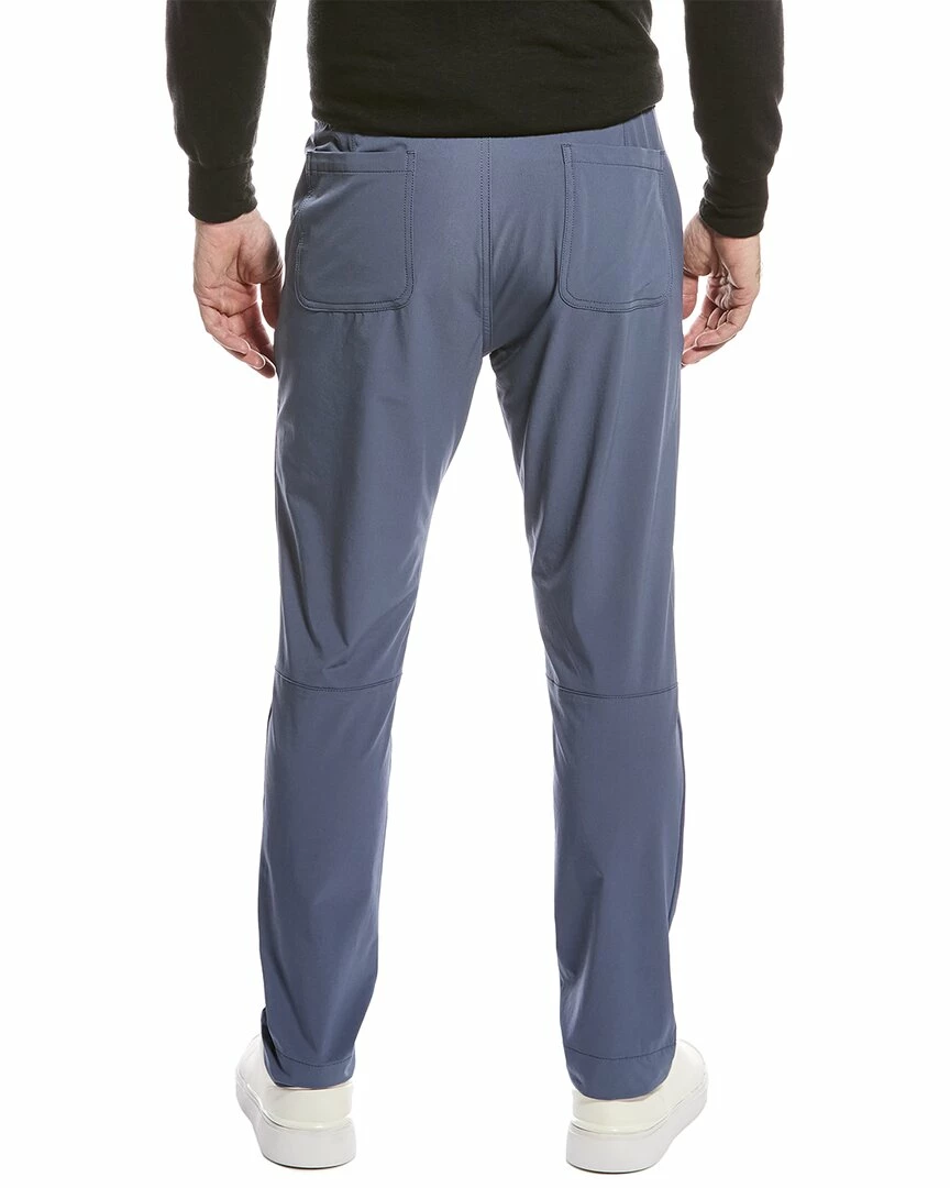 - Casual Pant In Blue With Elasticized Waist Sides, Belt Loops, And Four-Pocket Styling