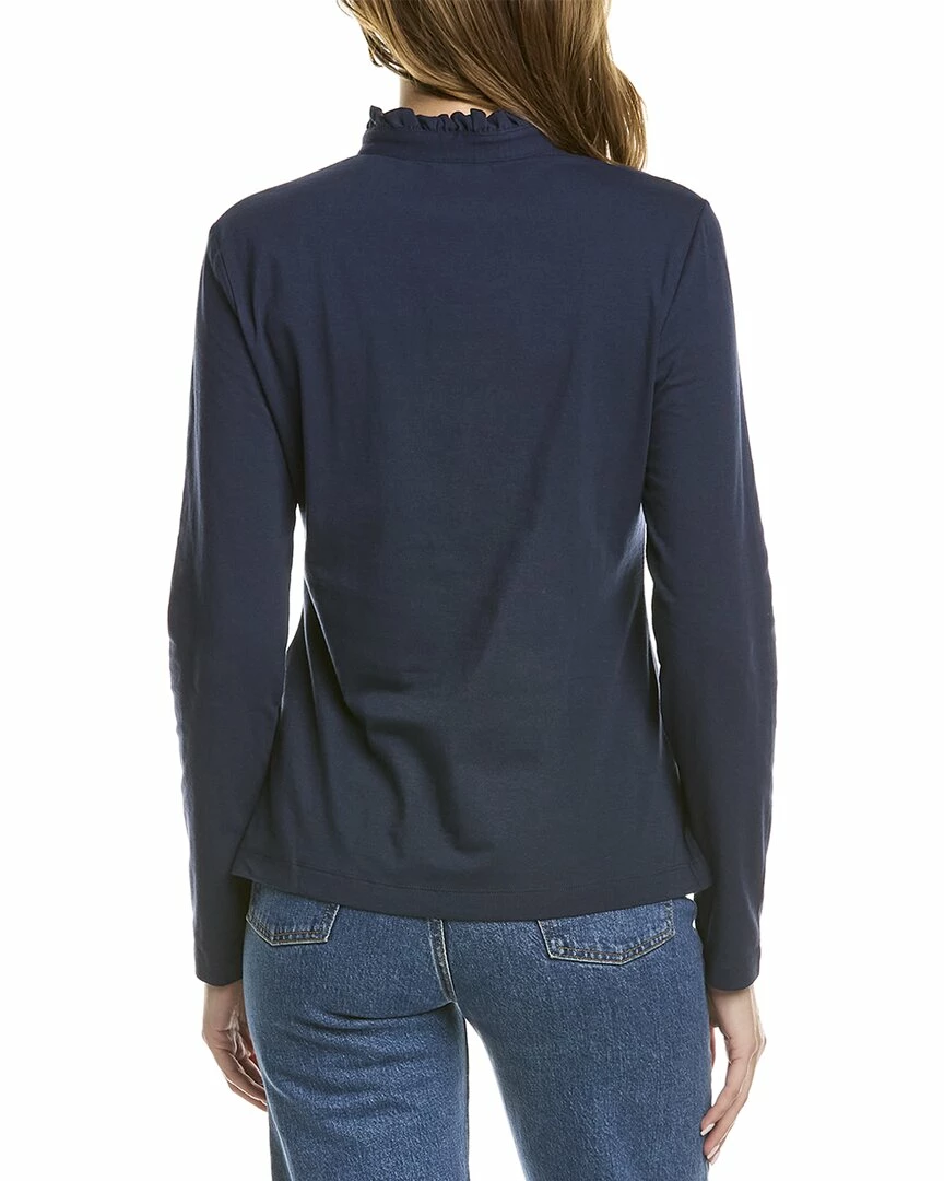 - Henley Top In Navy With Ruffle Trim And Stand-Up Collar