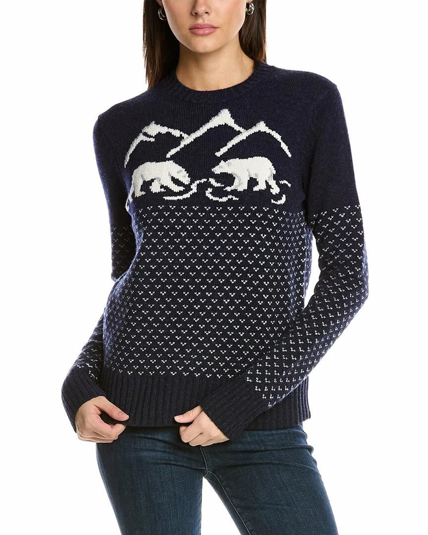 - Intarsia Wool Sweater In Navy Polar With Crewneck And Ribbed Trim
