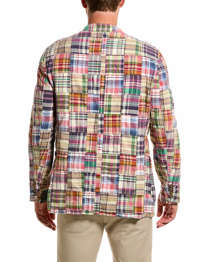 - Madras Patch Regent Fit Blazer In Multicolor With Notch Lapel, Two Front Pockets, And Center Back Vents At Hem