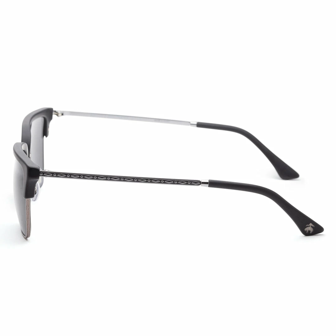 Dimensions – 57 mm x 20 mm x 145 mm. The frame is Plastic Browline shaped. The frame is Matte Black and the lens is Grey.