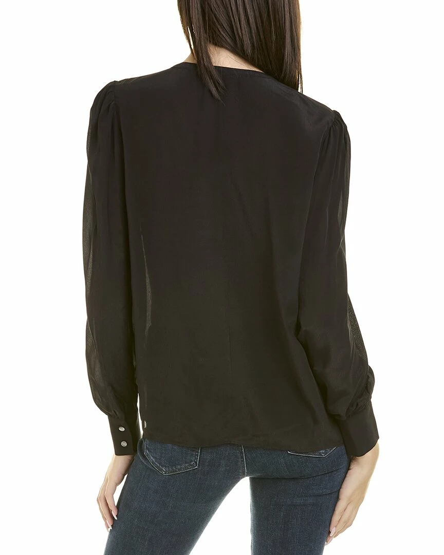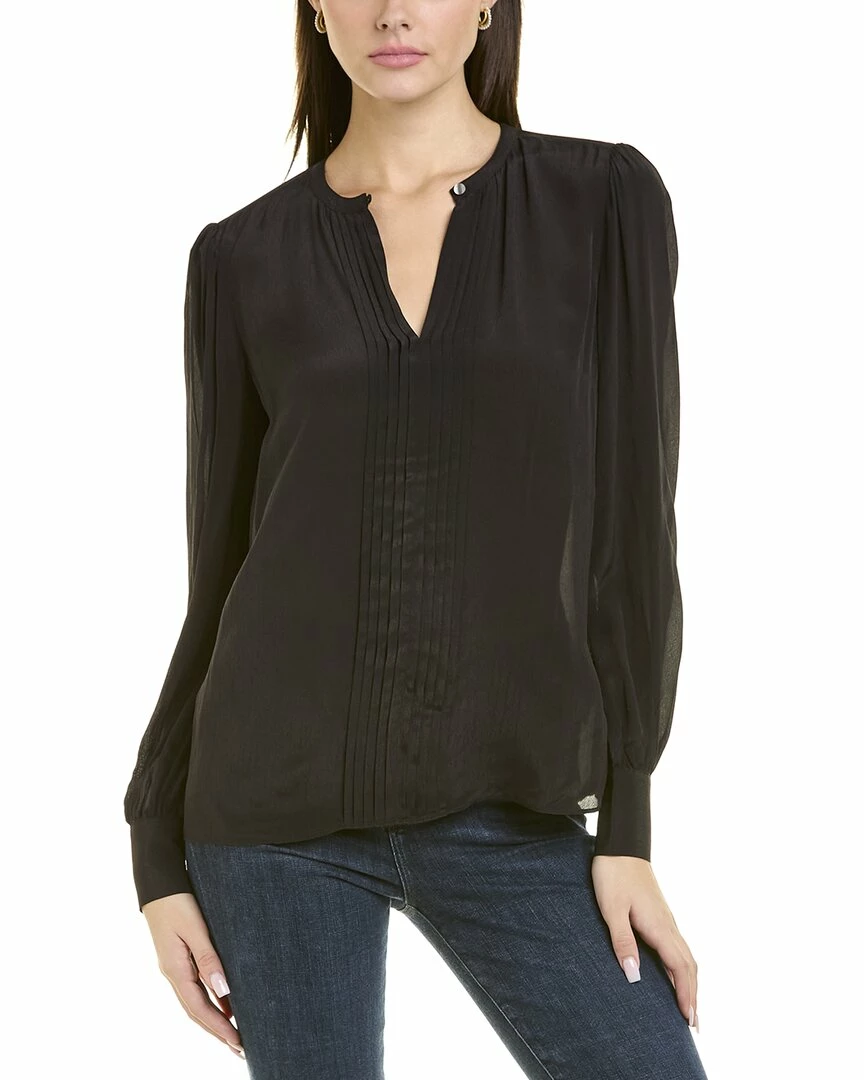 - Pintuck Blouse In Black With Shirred Shoulders And Button Cuffs