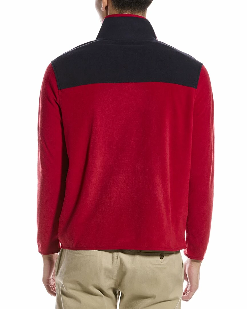 - Polar Fleece 1/4-Zip Pullover In Red And Navy With Funnel Neck And Dropped-Shoulder Sleeves