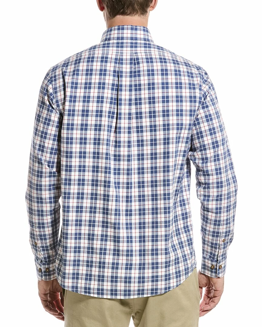 - Regent Fit Sport Shirt In Blue And Red Plaid With Button-Down Collar, Left Chest Pocket, Barrel Button Cuffs, Box Pleat At Back, And Shirttail Hem