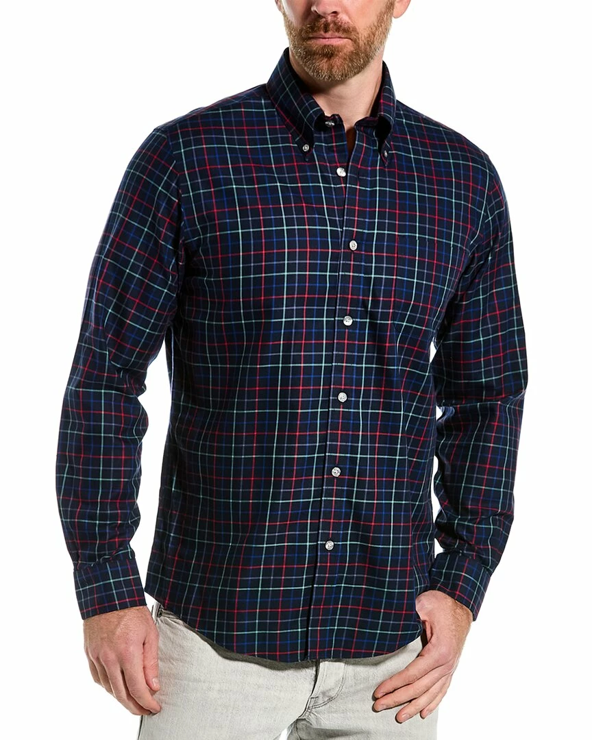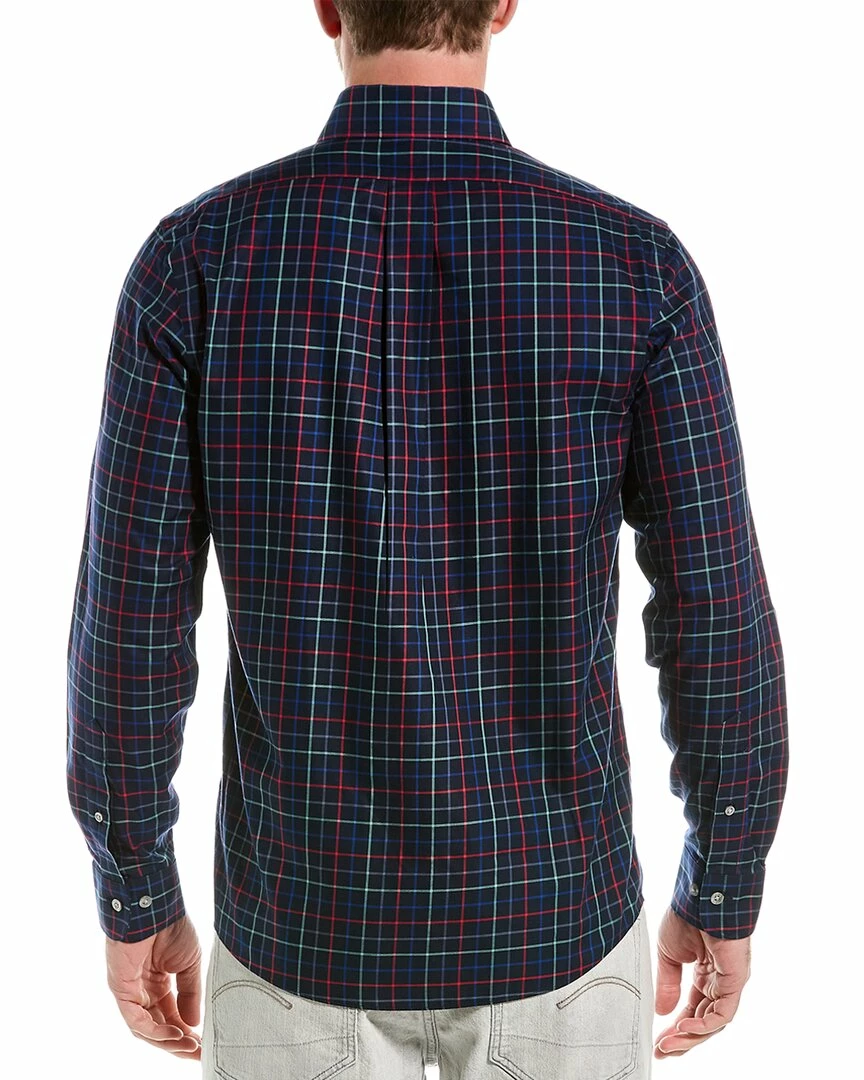 - Regent Fit Sport Shirt In Navy Multicolor Check With Button-Down Collar, Left Chest Pocket, Barrel Cuffs, Shirttail Hem, And Box Pleat At Back