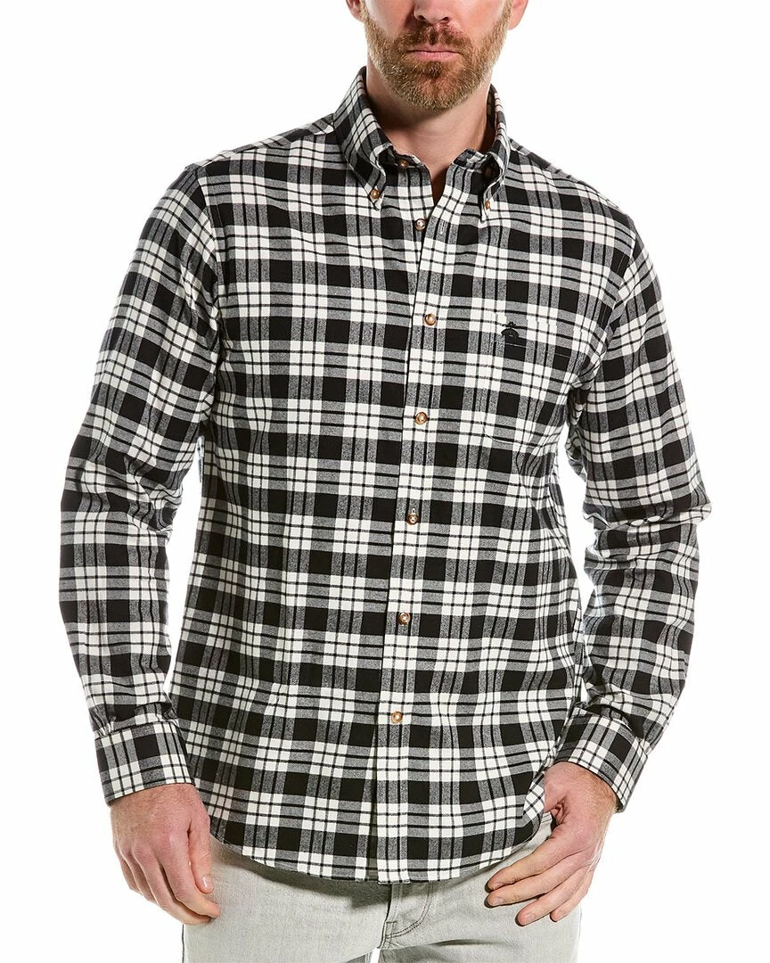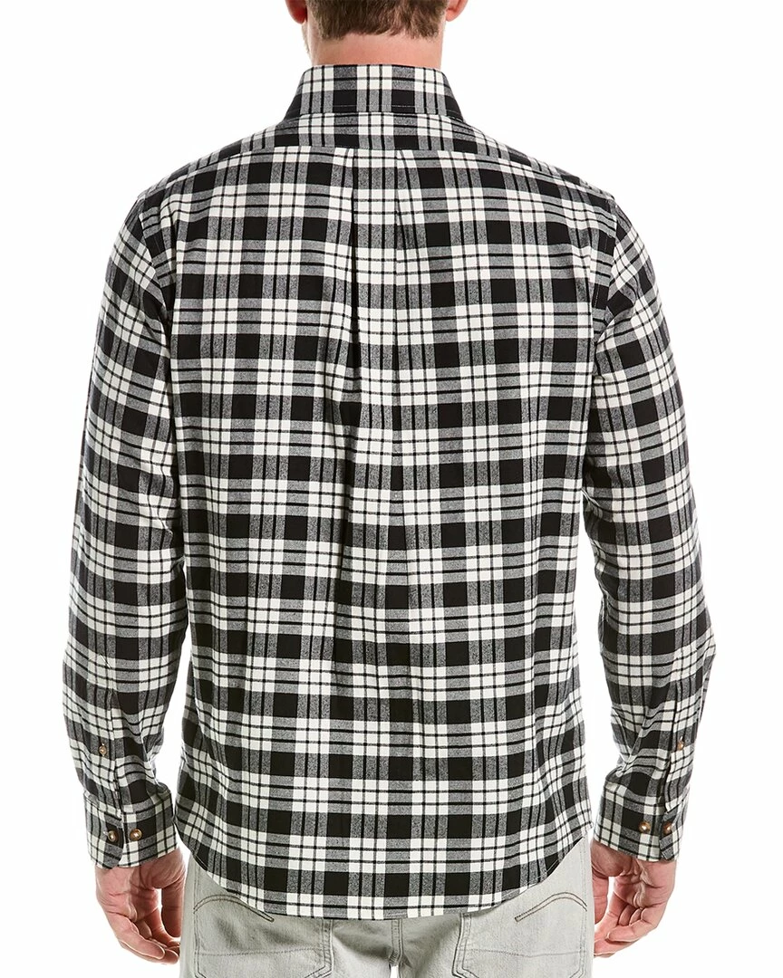 - Regent Fit Sport Shirt In Black And White Plaid With Button-Down Collar, Left Chest Pocket, Barrel Cuffs, Shirttail Hem, And Box Pleat At Back