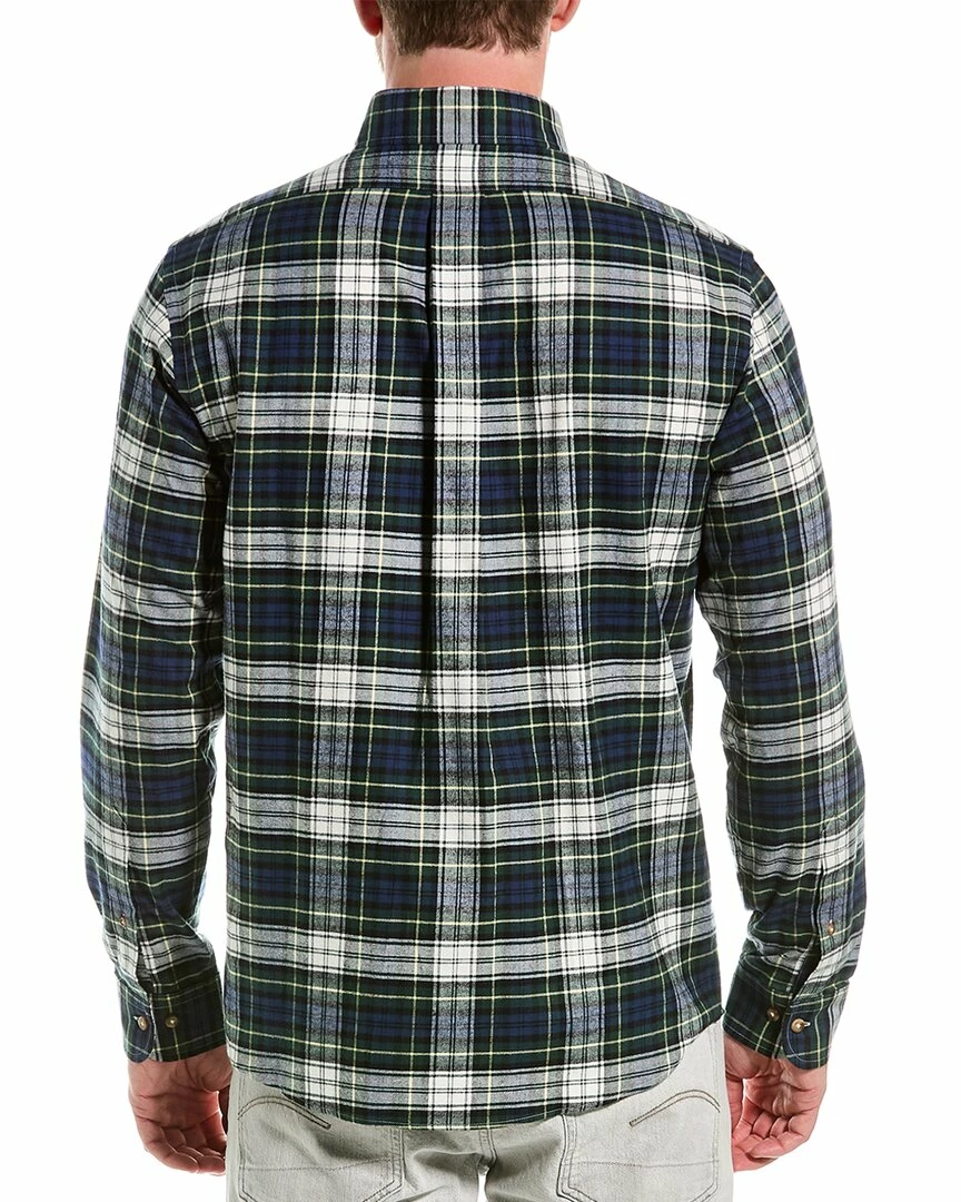 - Regent Fit Sport Shirt In Green And Blue Check With Button-Down Collar, Left Chest Pocket, Barrel Cuffs, Shirttail Hem, And Box Pleat At Back