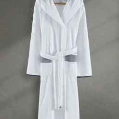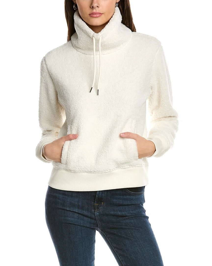- Teddy Mock Neck Jacket In White With Drawstring Collar And Kangaroo Pocket