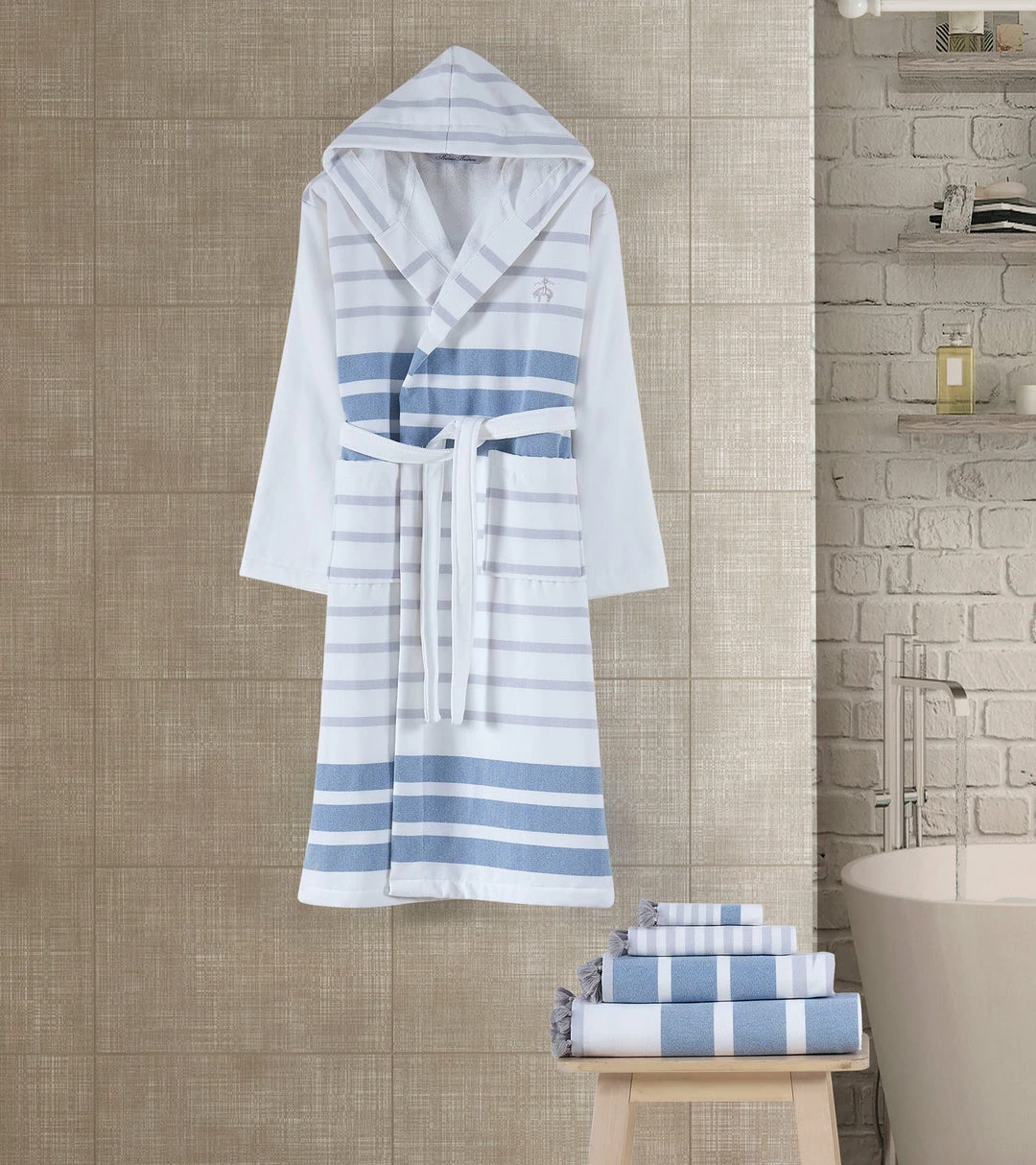 - Brooks Brothers Turkish Peshtemal bathrobe is featuring beautifully colored stripes. This lightweight bathrobe is absorbent, long-lasting, soft, and quick-dry. Elegant stripe peshtemal design on the front side with a terry lining on the back side.
