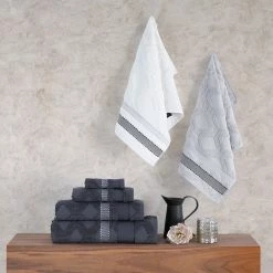 - Bath Towel – 55″L x 28″W; Hand Towel – 28″L x 16″W; Washcloth – 12″L x 12″W